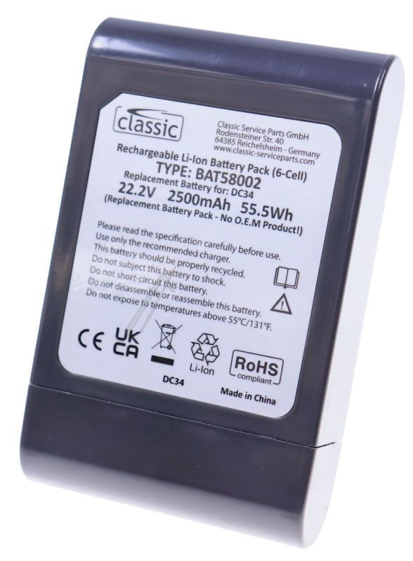 22,2V-2500MAH BAT58002 ACCU ALTERNATIEF VOOR DYSON DC34, (96555703, 96555706, 96786101, 96786104)